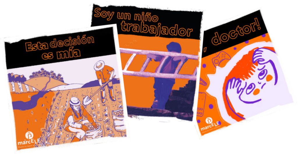Las canciones están pensadas para trabajar la gramática y el léxico con estudiantes de educación pre-escolar hasta universitaria y adultos. Verbos como gustar, la rutina diaria, el pluscuamperfecto y muchos temás más se presentan con temas transversales como medio ambiente, paz, igualdad de género. Todas las canciones son originales y están arregladas e interpretadas por músicos de Colombia de gran trayectoria profesional. Puedes escuchar las canciones en línea sin costo en dos versiones: cantada y karaoke. Al descargar las canciones por un aporte voluntario desde 1,5€, apoyas nuestro proyecto.